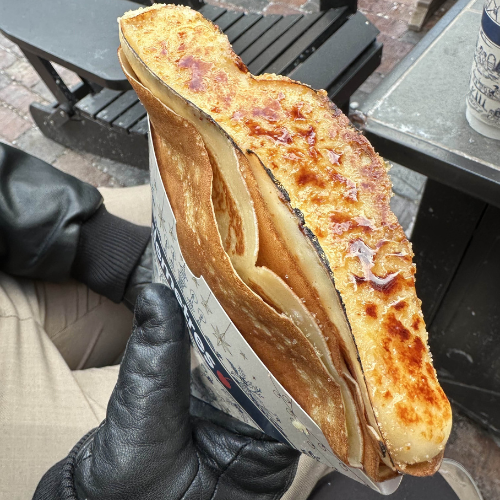 Dec 2025: My boyfriend and I went to the nearby Christmas Market recently and ate all sorts of foods. This crepe blew everything out of the water. It was a crepe filled with creme brulee, strawberries, banana slices, and unicorn dust. It was just that good. I dream about this crepe still.